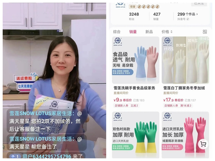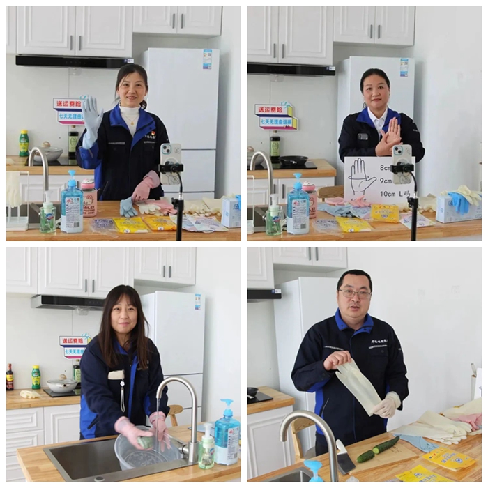 從綠幕直播間搬到了充滿生活氣息的“廚房”,在新的場景中,華騰橡塑公司手套產(chǎn)品的性能,更好、更直觀地展示給了消費者。