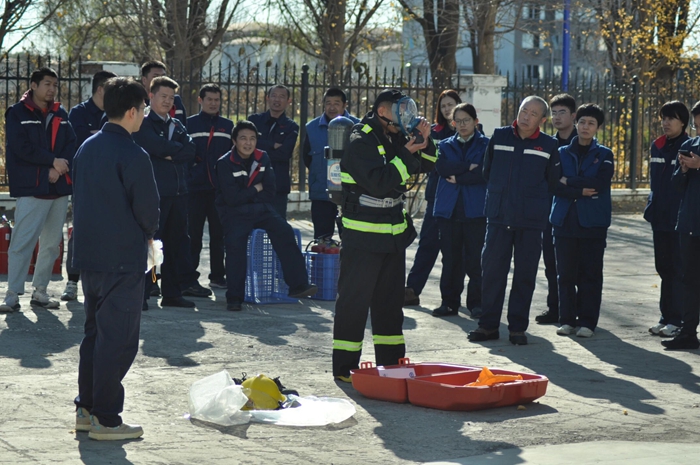 化研院首先進行了模擬辦公樓起火疏散演練。培訓(xùn)伊始,消防站專業(yè)人員結(jié)合近年來典型的火災(zāi)案例,深入淺出地講解了火災(zāi)危害、報警程序、逃生注意事項等極具實用性的方式方法。