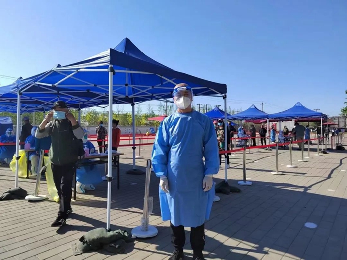 5月16日早上7點半, 我提前半小時來到通州區(qū)中倉社區(qū)報到,因為第一次參與到核酸檢測工作,還比較忐忑,不知道自己能否干好。在與社區(qū)負(fù)責(zé)人對接后,進行了簡單的崗前培訓(xùn),跟隨著大家一起布置場地,在社區(qū)工作人員的耐心指導(dǎo)下,從開始時維持秩序、保障綠色通道這樣簡單的工作,到后來我已經(jīng)能夠獨立完成身份信息采集、對所采集的樣品進行開箱和封箱、幫助檢測替換下來的醫(yī)生進行消毒,并在檢測完成后收集場地內(nèi)的物品,清理、消毒醫(yī)療垃圾等諸多工作,一系列工作我一氣呵成,他們都夸我是“檢測小能手”。