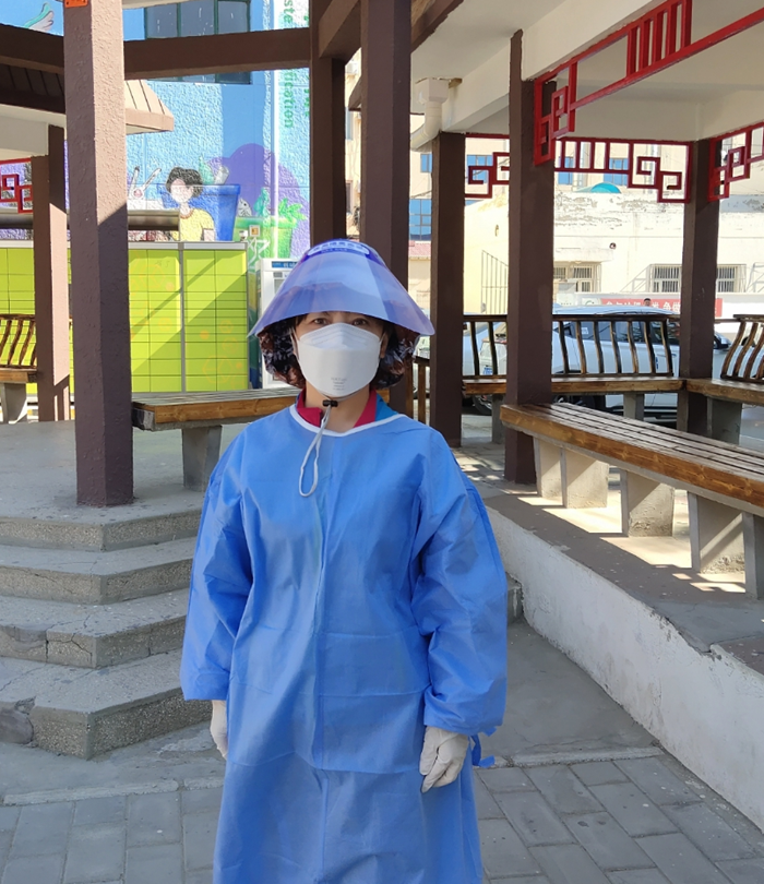 當(dāng)時,社區(qū)的工作人員都去支援密接區(qū)域了,短時間內(nèi)我所在的小區(qū)出現(xiàn)了管控人員人手不夠的緊急情況,沒有多想,我全副武裝,上崗!
