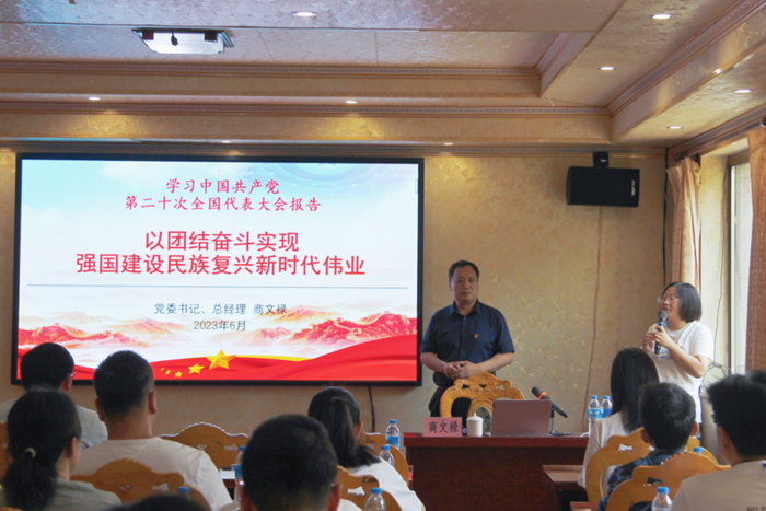 李磊還以本次主題教育專題黨課為契機(jī),為進(jìn)一步統(tǒng)一公司干部職工思想認(rèn)識,凝聚實干擔(dān)當(dāng)促發(fā)展的堅強力量進(jìn)行了形勢任務(wù)教育,并向黨員同志和干部職工介紹了公司發(fā)展成果和下一步工作計劃。
