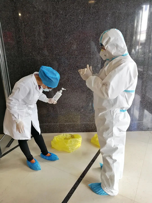 “我是黨員,我先來(lái)”,時(shí)間緊任務(wù)急,作為一名黨員率先垂范,周麗麗勇敢地接下送餐和垃圾收納任務(wù)。為確保完成一日三次的送餐和垃圾收納工作,周麗麗每次都要全副武裝穿上防護(hù)服,并嚴(yán)格按照要求進(jìn)行消殺。俗話說(shuō)隔行如隔山,從未接觸過(guò)防護(hù)服,其穿脫過(guò)程異常艱難,但周麗麗不怕麻煩。為了防止交叉感染,隔離區(qū)域的電梯停止使用,每次賓館人員送餐都要爬樓梯將餐飲搬到樓梯間,然后由全副武裝的周麗麗徒步一個(gè)房間一個(gè)房間地配送。送餐完畢,還要一個(gè)房間一個(gè)房間地收納垃圾。由于防護(hù)服不透氣,剛一行動(dòng)起來(lái),周麗麗已經(jīng)渾身是汗,但是她沒(méi)有退縮,每次都保質(zhì)保量按時(shí)完成了任務(wù)。在數(shù)日的時(shí)間里多次進(jìn)入隔離區(qū),圓滿地完成了任務(wù),真正做到了關(guān)鍵時(shí)刻站得出來(lái),危急時(shí)刻豁得出來(lái)。