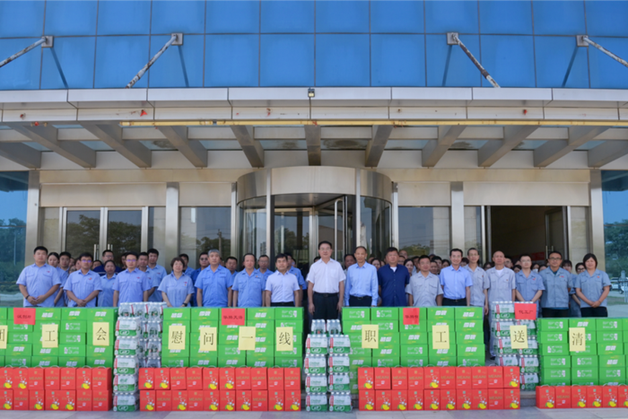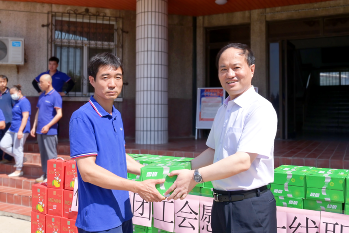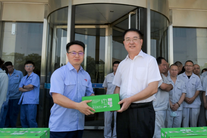 王國華詳細(xì)詢問了大家的工作狀況、身體情況,再三囑咐大家要?jiǎng)谝萁Y(jié)合,嚴(yán)格遵守各項(xiàng)操作規(guī)范,保證自身安全,并將防暑降溫飲品親手送至一線職工,開啟了集團(tuán)2023年度夏季“送清涼”活動(dòng)。