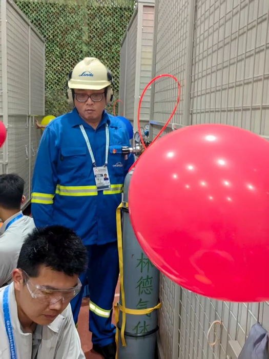 在這期間,為保障產(chǎn)品運輸安全高效,北普公司提前對全部保障車輛進行維修保養(yǎng);針對工作現(xiàn)場空間有限、人員較多的實際情況,公司專門定制了鋼瓶推車,消除了鋼瓶因手動挪動易發(fā)生碰撞、倒伏的隱患。此外,為確保充裝過程的絕對安全,公司還明確要求,鋼瓶到位后,必須用綁帶與氣球籠體固定,以免對現(xiàn)場操作人員造成傷害。可以說,在演練和正式活動中,北普公司始終將安全作為頭等大事,對每一個細節(jié)都實施清單化管理,最終確保了氣球充裝保障任務的全過程安全。