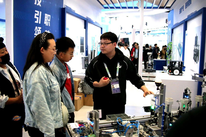 在展區(qū)現(xiàn)場,技師學(xué)院自主培養(yǎng)的世界技能大賽金牌選手,結(jié)合自身成長經(jīng)歷,向觀眾講述“技能成才技能報(bào)國故事”,展現(xiàn)了青年高技能人才傳承匠心、為國爭光的卓越風(fēng)采。